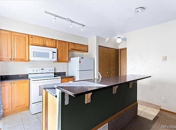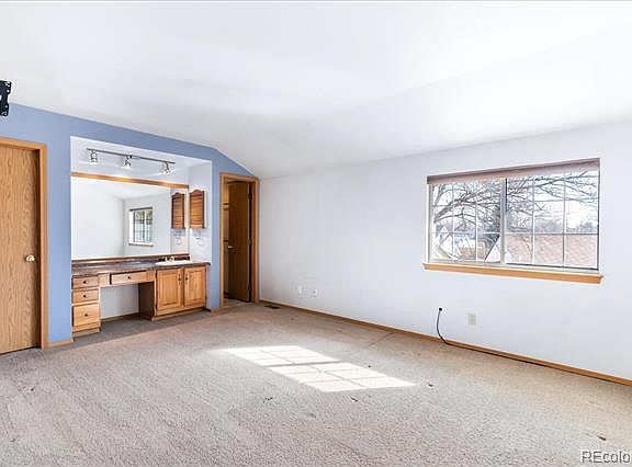 Owens Park is a small, well-maintained hidden gem community in Wheat Ridge! Dead-end street means no through traffic. Easy access to Golden, Denver and the foothills via I-70. Main level living is possible with one spacious bedroom and ensuite access to the full bath, plus a vaulted family room with fireplace (TV and mount included), dining area and updated kitchen. Kitchen features granite countertops, oak cabinets, pantry storage and a breakfast bar at the island. Attached 1-car garage with attic storage. Several updates - furnace is appx 8 years old, newer entry tile. Head upstairs to the Primary Suite with big walk-in closet and full bath. This layout is great for guests or roommates with plenty of privacy. Small fenced patio faces greenbelt with community picnic table - several owners have gardens, and many long time homeowners reside here! This home is a blank canvas - with updated paint and flooring, it can look exactly how you want!