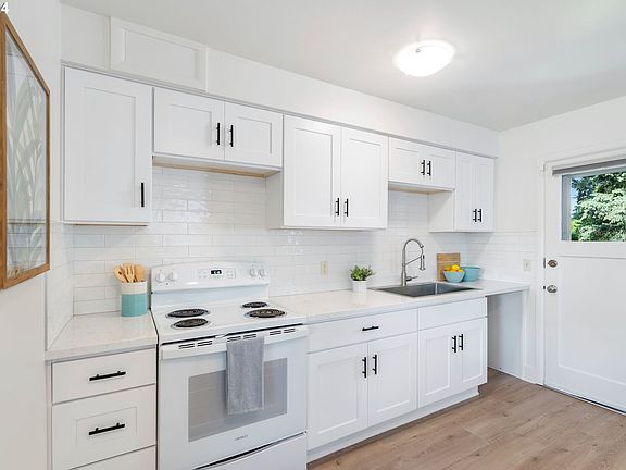 - Features: Eating Area, Garden Window, Kitchen Dining Room Combo, Updated Remodeled, Free Standing Range, Free Standing Refrigerator, Quartz