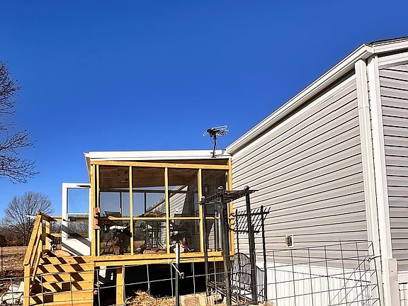 This manufactured home is a must see! Nestled in the heart of the countryside, sits a peaceful gem. Since it was created in 2021, this place is only a couple years old, and it looks brand new. Not only has it been meticulously maintained and gently used, but it has upgraded additions to make it that much better. The owner had a screened in front porch made so you can sit outside and drink your coffee in the peace of the countryside without the bugs! Step around back and see the charming addition that has been beautifully added for even more space. In addition to this, the property is also set up with a RV hookup which is complete with electric and septic hookup. Come see this for yourself.
