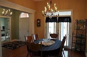 Picturesque home with great style & amenities. A charming front porch leads into the foyer with hardwood floors & chandelier. A cozy study is to the right & impressive formal dining room to the left. A huge family room features a fireplace, double crown molding & recessed lighting. The kitchen includes tons of counter and cabinet space, built-in microwave, solid surface counter tops, island and breakfast bar that backs up to the living room. Relax in the master suite with je...