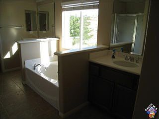 Must see home. This home has 5 bedrooms and an option for the 6th. Hard wood floors upstairs, staircase and in all bedrooms with porcelain tile in living areas. Upstairs laundry with plenty of storage. All new paint inside and out. Shutters and ceiling fans through out. Has solar system fully paid for. Backyard is a desert landscaped oasis with pond. 50 ft covered patio with textured concrete, fire-pit and outdoor ceiling fans. The 3 car garage boasts epoxy floors and built in cabinetry with plenty of shelf space. Front yard has a beautiful courtyard and porch area. Wired for surround sound inside and out. Central vacuum. All brick and wrought iron walls no plastic or wood . Views of mountains and desert. It is located in the most sought after school district. No HOA