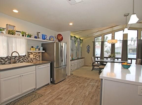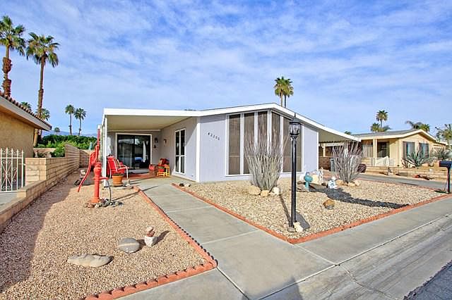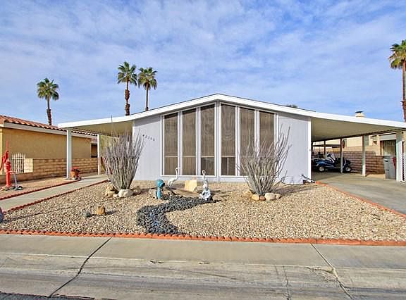 PRICE REDUCED and Back on the Market . This Major Remodel, open floor plan, is ready for you to move in. Kitchen & Master Bathroom has been totally remodeled New flooring, interior & exterior recently painted. Roof approx 2 yrs old, A/C 5yrs. A Recorded 433A (easier to finance) Large 2 bed/2 bath, 1740 sf. home on large 5227 sf lot. Open floor plan, enjoy great views from the vaulted ceiling living/dining room or the large family room with a bar area. Second bedroom is roomy, walk-in shower. The kitchen and separate laundry room offer tons of storage with built-in cabinetry. This home invites you to enjoy the outdoors with three separate patios located off the front entrance, driveway/carport and the off master bedroom.Two auto carport with storage shed. Great primary home or investment property. Portolo Country Club is a popular, 55+ community with low HOA ($354/mo) that includes unlimited free golf for 2, free cable TV, free internet service and free trash pickup. 3 community pools/spas, clubhouse, tennis & pickle ball courts, bocci ball courts, fitness center and cafe. Best value in the desert. A very people and pet friendly community.