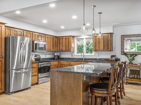 Welcome home to this beautifully updated home in a prime Golden Valley location. The open main floor showcases a stunning kitchen with an expansive island that seamlessly connects to an informal dining area and sun-filled living room. The main floor also features four bedrooms on one level, a nicely updated full bathroom, as well as a private primary ensuite. The bright lower level is perfect for relaxation and entertaining, with a versatile family room complete with a stunning dry bar and wood-burning fireplace. The lower level also boasts a beautifully updated bathroom with a walk-in shower as well as a home office or non-conforming fifth bedroom. Enjoy time outside in the lovely wooded, private backyard with a charming deck. Some great updates include an remodeled kitchen, a newer roof (2023), remodeled lower level bathroom and living room (2023), and exterior paint (2022). Conveniently located near trails, lakes, parks, shopping, and with a quick commute to Minneapolis, this home has it all! 1 year HSA warranty offered!