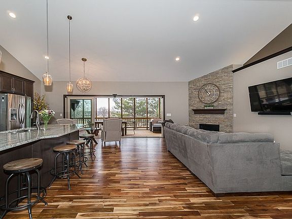 This like-new walk-out is perfectly situated on .55 acres with a flat front and backyard for loads of room to run and play. Mature trees add vibrancy to the back yard and no backyard neighbors allows for plenty of privacy. Two bedrooms and two full baths are located on the main level. The finished walkout lower level features a family room, game room, two bedrooms, one full bath, workshop and ample storage. Special features include a beautiful granite in the kitchen, stainless steel appliances, central vac system, extra-large heated garage, and a 16' sliding glass door focal point which provides plenty of natural lighting. On the main level you'll enjoy acacia hardwood flooring, vaulted ceiling, floor-to-ceiling stone fireplace, and 8' doors.