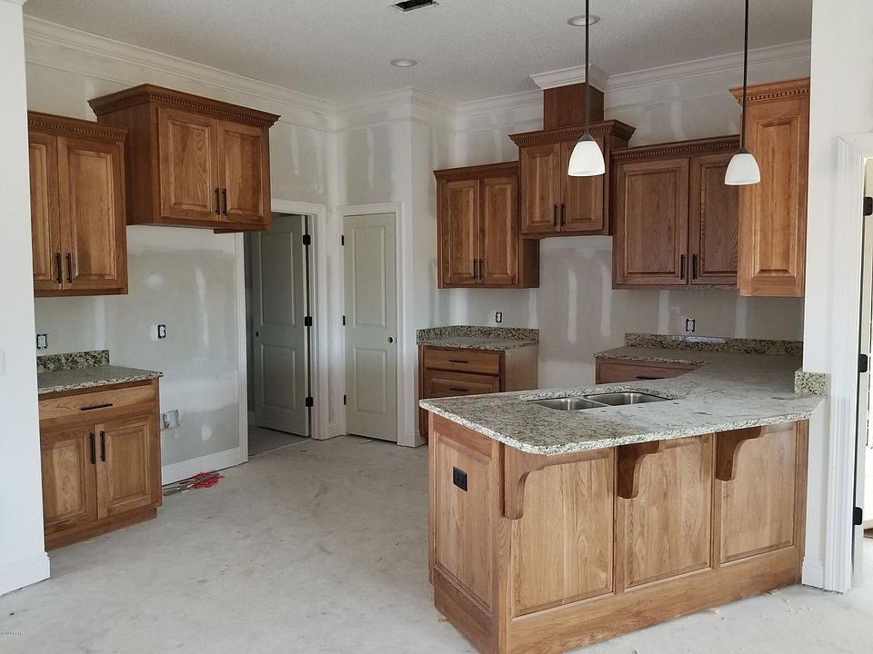 Construction completion January 2021 on this 3 bedroom 2 bath split all brick home that offers front porch, Master bathroom with his & hers triple shower with Rain maker (3 shower heads) and shower seats on both ends. large master bedroom with rope lighting, sitting room or office & extra large walk in closet. The kitchen is a dream with all real wood cabinets, granite countertops, and stainless steel upgraded appliances. There are cabinets in the laundry room. Living room with electric fire place and crown molding. Home offers a Florida room, open back porch, security system, generator ready electrical outlet with cord, outside shower and sprinkler system, receptacle under eaves. This house has the Geothermal seal spray foam system.