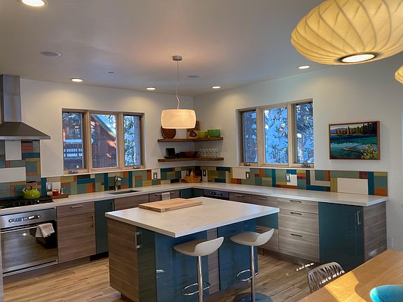 Mountain Modern with a Contemporary Vibe and just a block away from the lake and lake access. South facing and flooded with light, this home was built for large gatherings with family and friends. Spacious open floor plan on every level with plenty of sleeping space for 20. The fully equipped kitchen with large island and expansive dining table has ample counter and storage space. The home also comes with a superb modern communications system that includes a drop down screen and ceiling mounted projector for movie-style watching of TV or movies; plus built in music systems. Enjoy the quiet warmth of radiant heated floors (even the garage) and the ambiance of a propane stove in the main level. Close to skiing in the winter and endless summer activities. OPEN HOUSE Saturday & Sunday 1:00-4:00 Labor Day weekend.