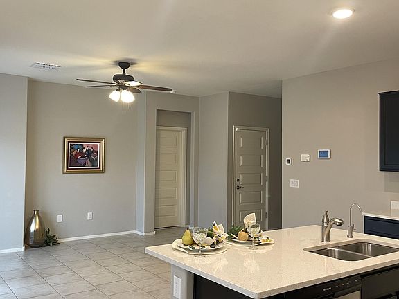 Discover the beautiful Near New Home, a cozy 3-bedroom, 2-bath home nestled in the amazing Desert Vista Estates. This inviting residence features an open kitchen, dining, and great room layout, complemented by a private split floor plan for added privacy. Enjoy enhancements such as 9' ceilings, Double Espresso Birch Cabinets, and stylish 5-panel doors. The elegant Quartz Countertops and 16x16 tile a touch of sophistication throughout the main areas, while two-tone paint and upgraded carpet in the bedrooms create a warm and welcoming atmosphere. Additional premium upgrades include a convenient gas hookup and stainless steel gas range.Tankless water Heater,water filtration at the kitchen sink and the added efficiency of a radiant roof barrier. Don't miss out on this fabulous home!!