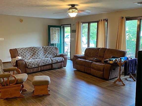 Country Home. This 3 bedroom, 2 bath homes has lots to offer. 1.45 acre lot. The open floor plan has plenty of room for gatherings and entertaining. The great room has a wood burning stove that is included. The dining/kitchen area has an island. Lots of cabinets complete this inviting kitchen. The master bedroom is spacious with a walk in closet. The 3rd bedroom has no closet, but could be converted into a large storage/laundry room. Most of the land is directly in front of the home. Would be great for animals, pole barn, etc. All electric household, whole house fan is also a bonus. Low taxes. Included are: wall oven, counter range, microwave, disposal, refrigerator, all window treatments, and small shed. New Roof 2019