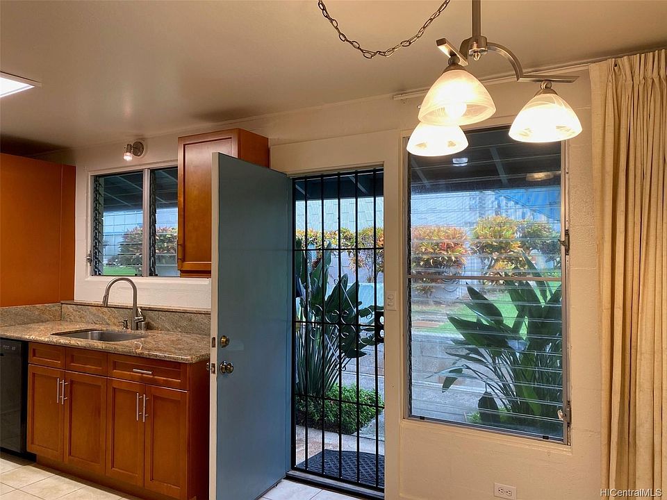 This beautifully renovated corner unit townhouse is located in Tropicana Village Makai in the desirable Kahala area. The home comes with granite countertops in the kitchen, vinyl wood flooring throughout the living areas, bedrooms and lighted ceiling fans in every room. It features air-conditioning in the master bedroom, front loader washer and dryer and other quality features. This townhouse has the feeling of a single family home capturing the cool island breezes, the plush backdrop of the landscaping and open green spaces around the complex. There is abundant storage space in the attic. This rarely available unit is steps away from the Kahala Mall shopping center and has easy freeway access.