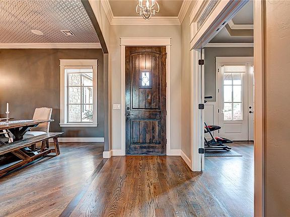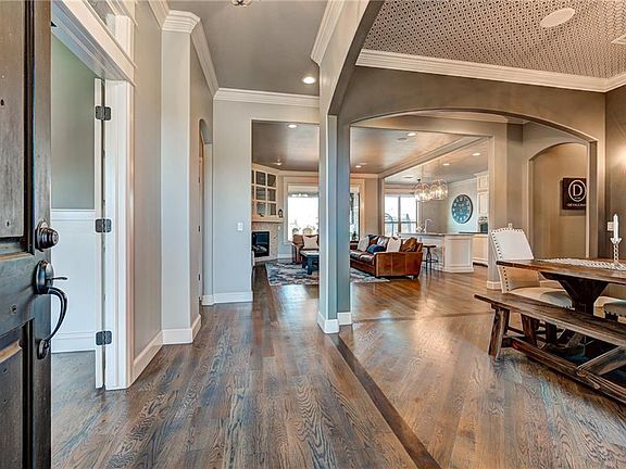 Builder's Model Home, stunning details can be seen throughout. From inside to the outdoors this home has it all: Outdoor Fireplace, built-in grill with stacked rock and granite counters, Open living to kitchen with center island featuring soapstone countertop and Farmhouse sink, Built-ins throughout. Stainless steel appliances, Designer light fixtures, Wood floors. Master retreat with spa like bath, glass walled shower, double vanities and seemingly endless amounts of closet space. Formal dining, Study with private entrance to front porch, Storm shelter, Split 3 car garage and bonus room upstairs with bath. Located in west Norman's premier neighborhoods.
