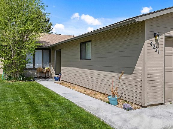Fantastic investment opportunity that is centrally located and nestled in a quiet neighborhood! Close to schools, shopping, the Fairgrounds, and Hyatt Hidden Lakes Reserve! Getting to downtown Boise or Eagle is a breeze . . . or just stay home and enjoy the fully fenced large back yard, which is so rare for duplex properties. Great parking and garage space add to the appeal for renters – or for a primary residence looking to “house hack” by renting the other side. Updates for the property include new vinyl fencing and sprinkler system. 4221 side has had interior updates including new kitchen, appliances, washer & dryer, sub flooring, flooring, new paint, and new bathroom. 4223 has new stove, kitchen faucet, shower hardware and dishwasher.