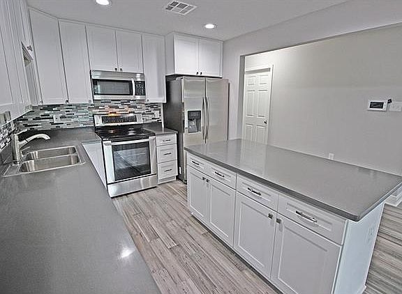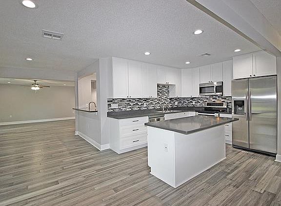 Renovated 3 bedroom 2 bath home with OPEN floor plan! This home features a NEW Spacious 17 X 11 Master Suite with walk in closet, new bath with double vanity! Beautiful updated kitchen with quartz counters, new stainless steel appliances, custom backsplash & island! HUGE den with fireplace & recessed lighting! Wet bar! All new flooring, updated light fixtures, updated bathrooms, doors... Designer colors! 2 driveways! Rear yard access! Detached storage shed! Lovely covered deck!