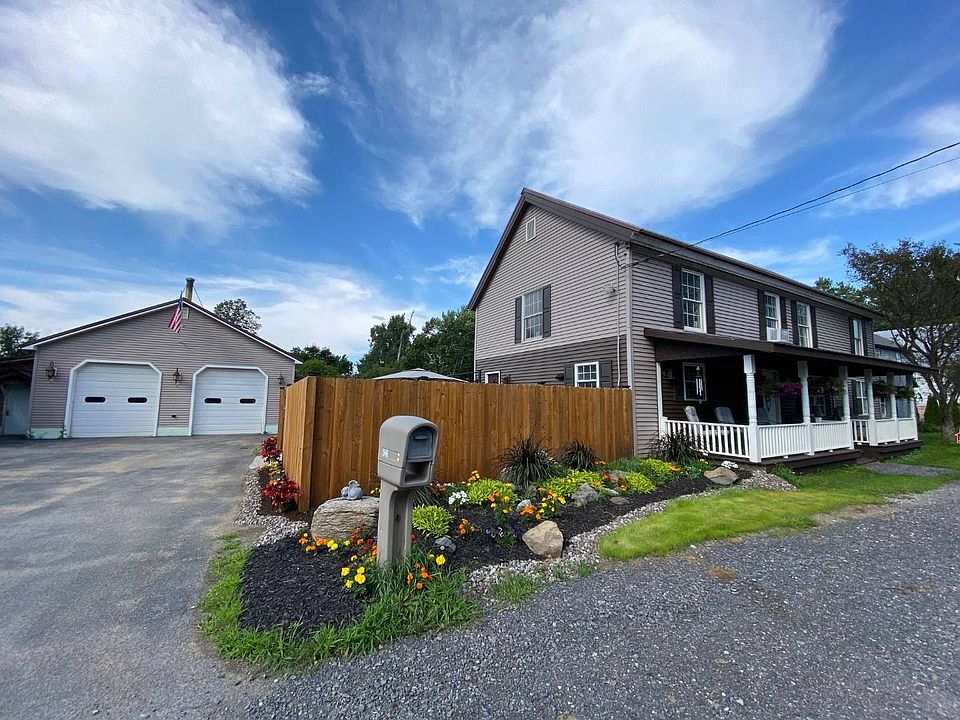 This property will wow you. The home has been completely renovated. Beautiful updated kitchen with hickory cabinets, granite countertops, stone backsplash and all updated appliances - kitchen opens into the very large dining room great for your gatherings, cozy living room with electric fireplace, first floor laundry and full bath. This home has a very large master bedroom that can accommodate any size furniture , with 2 additional bedrooms on the second floor, along with another full bath - large hallway so easy to move furniture . There is also a great storage room. This home has all updated windows, vinyl two tone siding and metal roof. There is a front porch and a side patio area. The garage is amazing with its heated floors and coal furnace which can also heat the house. Garage also has a large heated office. Garage door are 10ft high and the house and garage are on separate meters - great for an at home business. Garage also feature a vehicle lift. The owner is in the process of finishing up a beautiful fence which will give the large yard wonderful privacy. This is a must see.