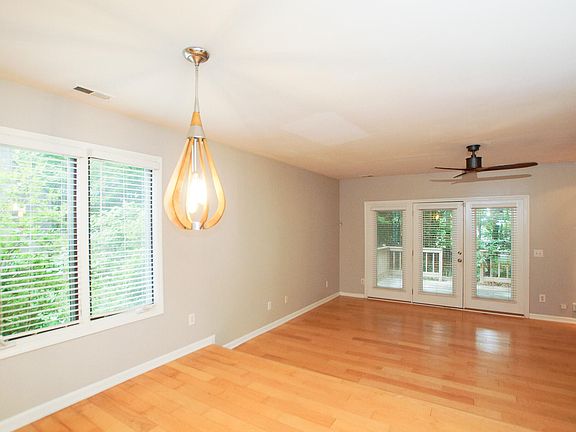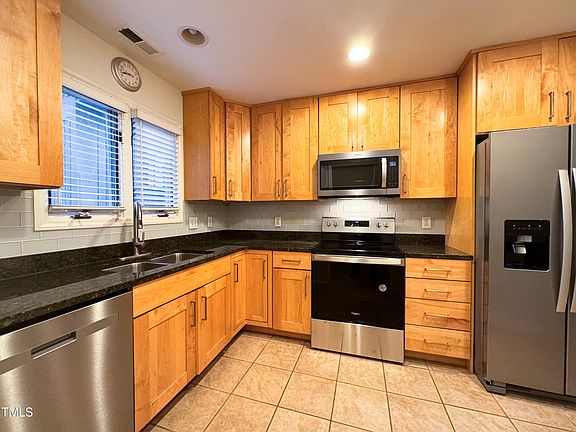 This is a rare opportunity to own a beautiful 4 bedroom, 3.5 bath end unit townhome with detached in law suite that includes a full bathroom. Located in the Sunscape Townhome community which features beautiful wooded lots and a quiet neighborhood conveniently located just off of Glenwood Avenue. Main home includes large master bedroom, New appliances (Refrigerator, Range, Microwave, Dishwasher, Washer and Dryer). Detached section could also be used as a great office space too. Lots of natural light. Many updates- granite countertops and 42' cabinets in kitchen. Recessed lighting and hardwoods on main floor. Step down family room w/gas FP. Upstairs you will find brand new carpeting, All updated bathrooms with quartz, tile flooring & soft close cabinets. Jack & Jill bath upstairs. Patio & fenced in back yard. Great Glenwood location close to shopping, restaurants, RDU and RTP. Assigned schools for 2024-2025 are Hilburn Drive Academy (Elementary), Leesville Road Middle School and Leesville Road Middle High school with bus stop and parks nearby.