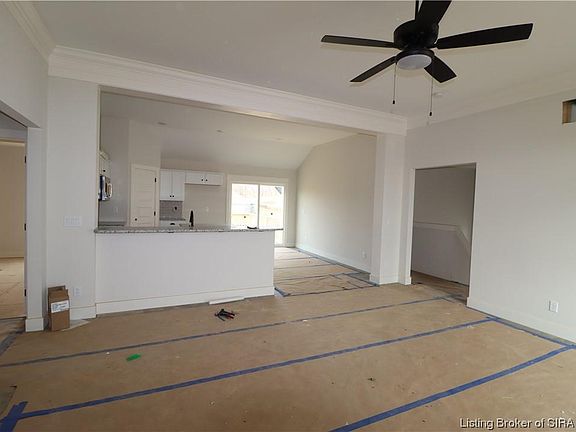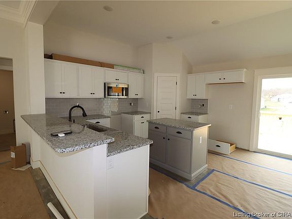 Pictures updated as of 2/23. Premier Homes of Southern Indiana presents the beautiful 'Haylyn' floor plan! This 4 Bed/3 Bath home features a covered front porch, a spacious great room with 10' ceiling, RevWood floors, open floor plan, split bedrooms, and laundry room with a pocket door. The eat-in kitchen features a vaulted ceiling, stainless steel appliances, granite countertops, island, walk-in pantry, raised breakfast bar, and roomy breakfast nook w/sliding door that leads out to the back deck, which is perfect for entertaining! Primary suite offers an elegant trey ceiling and en-suite bath with pocket door, double vanity, built-in linen tower, water closet, large walk-in shower, and spacious walk-in closet. The full, finished walkout basement features a large 4th bedroom, full bathroom, and huge family room that walks out to the back patio. This home also includes a 2 car attached garage w/keyless entry & a 2-10 home warranty! Builder is a licensed real estate agent in the state of Indiana.