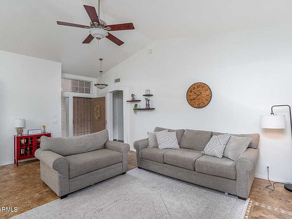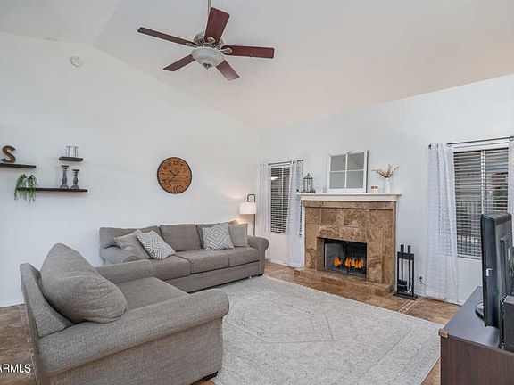 This amazing home sits on a corner lot in an established north Glendale neighborhood with no HOA and offers 3 bedrooms & 2 updated baths in 1503 SqFt. The floor plan includes an open great room with a wood-burning fireplace, vaulted ceilings, and split bedrooms. The updated kitchen features newer oak cabinetry, granite countertops, stainless appliances, ceiling fan, and pantry. Sliding doors lead out from the kitchen and the master bedroom to a great backyard complete with a fenced pool, grass for kids & pets to play on, full-length covered patio with tile floor & two ceiling fans, storage shed, and side yard with raised garden beds and RV gate. The master bedroom has two closets and a private bath with dual sink vanity, soaking tub, and tiled shower. Other features include a 2 car garage* with built-in cabinets, expanded driveway, paver sidewalk, front security door, tile floors in living areas & baths, carpet in bedrooms, newer vanities with granite countertops in both baths, a walk-in closet in one of the secondary bedrooms, newer A/C (2016) and much more! Schedule your showing today!