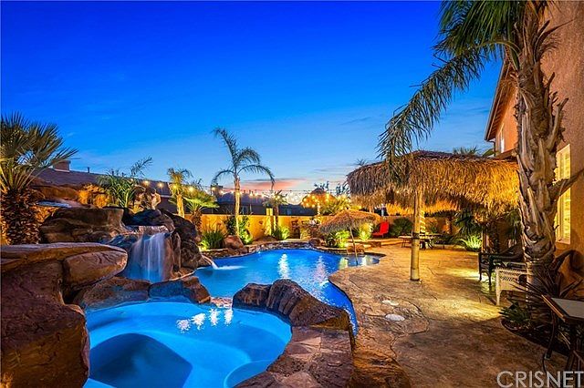 Looking for Your Own Private Oasis? This Stunning Home Offers Numerous Enhancements & Newly Constructed in 2018. This Oasis Features an Exotic Custom Pool Featuring Waterfalls, a Slide, & an Oversized Spa Surrounded by Terraced Landscaping Romanced with Palm Trees, Luscious Landscaping, Pergola, Accent Lighting & an Outdoor Kitchen for Entertaining. This Home Showcases 4 Oversized Bedrooms & 3 Full Bathrooms. NEW Spacious Kitchen Features a Breakfast Bar, Upgraded SS Appliances, & Soft Closing Drawers. Family Room Features a Gorgeous Stoned Fireplace & a Custom Designed Mantle. Downstairs Features a Bedroom & Bathroom. Formal Living Room & Dining Room. Upstairs Showcases a Loft, & 3 Additional Bedrooms w/ Large Closets & Closet Organizers, Guest Bathroom, & a Laundry Room. The Master Suite Showcases a Large Walk-in Closet w/ a Closet Organizer, Vanity Freestanding Bathtub, Custom Oversized Shower w/Heavy Glass, & Custom Designed Dual Vanities. Attached Three Car Tandem Garage withCustom Black and White Tile Flooring. New Milgard Windows, Feiss Lighting Fixtures, SPC Flooring warrantied for 25 Years, Moen Fixtures, NEW Dual Oversized AC Units, & RV Access w/ Hook-ups. Upgrades Galore!! The list Goes on & On!! This Home is Truly Paradise, Pristine, & Your Own Private Oasis.