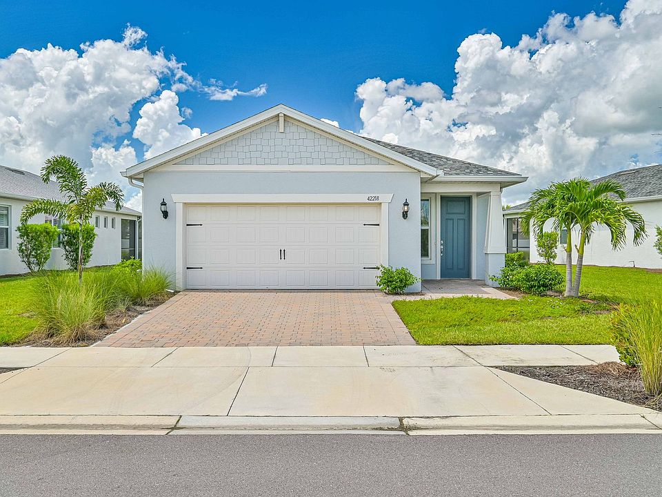 42218 Edgewater Dr is a 2 bed 2 bath single family home located in the highly desirable Babcock Ranch! Edgewater is a gated subdivision and just a short walk to the town center! The well-appointed kitchen is a chef's delight with upgraded stainless steel appliances, including a gas range, soft-close cabinetry, granite countertops, a tile backsplash, and a center island with a breakfast bar. The primary suite offers a spacious walk-in closet and a private bath with dual sinks, while both bathrooms feature upgraded tile and walk-in showers. Energy-efficient features include a gas water heater, washer and dryer and storm shutters. This home offers comfort, convenience, and modern living in a peaceful setting! Home of the Lake Timber Lodge & Cypress Lodge, Babcock Ranch community has some awesome amenities. Lake Timber Lodge is a residents-only rustic clubhouse with swimming pool and pool deck, screened-in seating, a fishing dock, and a playground. The entire family can enjoy this place! Cypress Lodge holds an oversized resort-style pool, game lawn for all, and modern clubhouses. Babcock Ranch also provides on-site shopping, dining, medical facility and schooling! INCLUDED IN THE RENT - Internet & Lawn Maintenance PETS - SMALL OK 2 Pets MAX - $400 per pet, pet fee. TERMS: 12 - 18 Month Lease Available! $2,500.00 Monthly Rental Rate $2,500.00 Security Deposit range from 1 - 2 months rent depending on credit/income standings $75.00 per person Application/Background to Realty Group * MUST HAVE RENTERS INSURANCE HOA FEES: MOVE IN DATE IS PENDING HOA APPROVAL Fees TBD