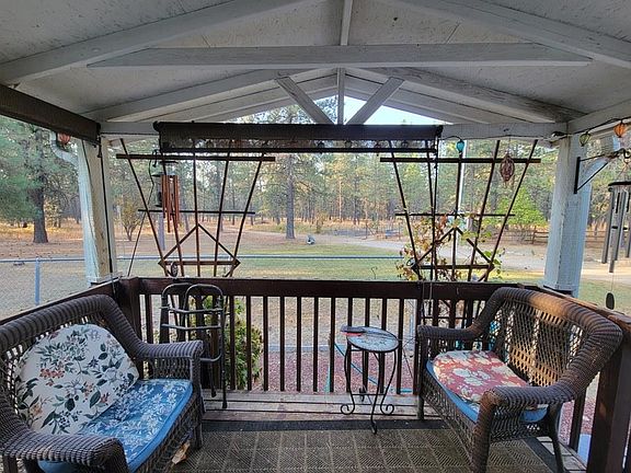 Enjoy This Beautiful Peaceful Setting. Nice open living 1998 Guerdon Home Double wide Manufactured Home, with newer appliances, serving island, wood stove for winter days. Primary bedroom with garden tub and walk-in closet, 2 more bedrooms and 1 bathroom, dining area, laundry area and 2 living areas! Relax on the large back deck with a extra Sunroom with tile flooring, over looking the landscaping. Keep the kids or pets in with a chain link yard fence. Do you enjoy gardening...... fence garden area with 12 garden beds and a possible chicken coop. Home is on 10.01 acres, with trees and a water cistern. We can't leave out the 1020 sq ft shop with loft, attached workshop and wood shed! If you need a RV spot with power, water and own septic system (WAS set-up for a granny home MFH has since been removed & electric meter was disconnected) As for internet the neighbor uses Century Link. Off Hwy 2 all paved roads to the shared driveway. This is a great set-up for peaceful living.