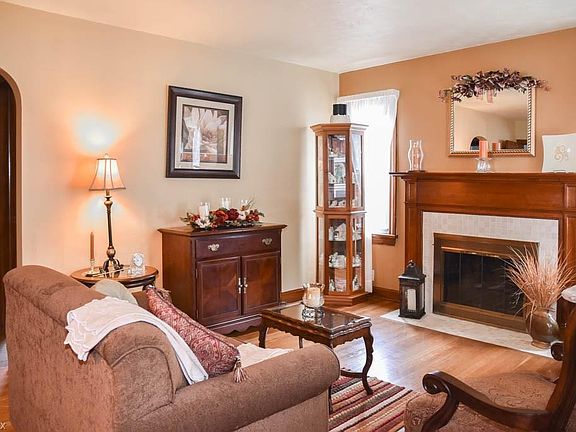 Super cute 3 bedroom, 2 full bath home with a finished lower level! Wonderful curb appeal with a beautiful stone walkway to the covered front porch. Step inside the inviting living room with gorgeous wood flooring, arched doorways and a fireplace. It opens to the dinette and kitchen with beautiful cabinetry. There are 2 bedrooms on the main level with hardwood flooring under the carpet and a full bath with a pedestal sink and linen closet. Spacious bedroom upstairs offering lots of built-in drawers and a huge walk-in closet. Enjoy extra living space on the finished lower level, boasting a rec room with ceramic tile flooring and a gas fireplace PLUS an updated 11x10 full bath with incredible storage. You'll love summer months in the fully fenced backyard with an aboveground pool! Complete with a patio, 2 sheds and a deck with an awning, the yard is perfect for entertaining! 1-car attached garage and an extra wide driveway. Pristine condition home - don't miss out!