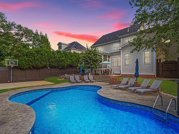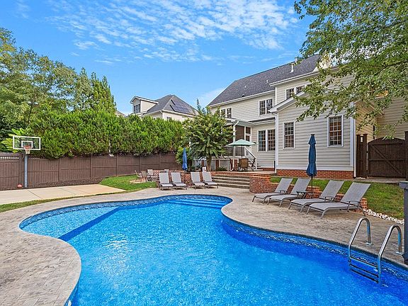 Stunning 6 bed (plus flex bed/bonus room) home in Leesville school district. Parade of Homes custom build in very desirable Sanctuary subdivision in N. Raleigh. The property is an oasis --offering the perfect blend of luxury, comfort, and entertainment with its saltwater pool, basketball court, fire pit surrounded by private, mature landscaping and natural wooded areas. You will enjoy the quality details and craftsmanship you expect from a custom builder including second-floor master with his & her water closets, two walk-in closets, custom window treatments, and cozy sitting area. Kitchen offers granite countertops, gas range, stainless appliances, and wine fridge connecting to elegant dining room. First-floor guest suite. Finished third-floor rec room. 3-car garage. The breakfast nook and screened-in porch overlook the backyard built for entertaining– it truly is a Sanctuary! Location is ideal--close to RDU, RTP, PNC, Downtown Raleigh, and major medical facilities.