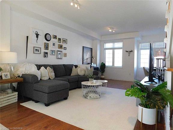 Welcome to this stunning Rathwood freehold town located in the family friendly Hickory Village development. This 1420 sq.ft/3 bdrm/2 full bath beauty is an exquisitely decorated & upgraded home, perfect for a family looking for more space to spread out. Multiple levels allow for work & school at home separation. Sunny wide open main floor with 9' ceilings creates an ideal entertaining space for family, friends & everyday living. The large eat in kitchen has many upgrades & features such as window & sliding door '16, granite counters, stainless appliances, gas stove, elf's, walkout to chic bbq balcony & upgraded open & closed display cabinets. Family room & dining room are combined to offer plenty of space. They both overlook the kitchen and feature hardwood floors, wall mirror & upgraded ELF's. The primary bedroom & 2nd bedroom are located on the top floor and both feature broadloom & upgraded ELF's. The primary suite is a serene space with a walk in closet, built in armoires, wallpaper & semi ensuite privileges to a 4 piece bath with soaker tub & separate glass shower. 2nd bedroom enjoys a custom barn board wall, broadloom & ceiling fan. On the ground floor you are greeted with a large tiled foyer, pendant light, hall closet, 3 piece bath w/glass enclosed shower. The 3rd bedroom/office has a w/o to the backyard. This space features new sliding doors '16, pendant light & hardwood flooring. The fully fenced & private backyard features a sunny exposure, newer 16' x 13' wood deck, playspace and landscaping '18 with no grass to cut. The basement features more storage space & a large unfinished laundry/utility room. Newer stucco facade ('19), front door handle set '21, garage door ('16), custom built shelving in garage, round out some of the numerous upgrades/features of this spectacular property. Proximity to highways, Miway & TTC, Sq1, community center, shopping, schools, parks and other amenities are key to the neighbourhood and why its so coveted.