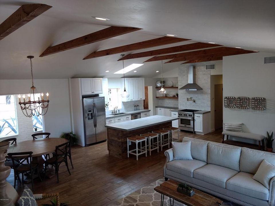 Do not miss your chance to live in this completely remodeled, open concept ranch w/ 2 car garage, huge back yard perfect for entertaining and tons of shade. Beautiful new stucco privacy wall w/ custom wrought iron gate. This gem in the heart of mid-town is completely remodeled (2018) 3 bed 2 bath home, new custom kitchen, high end details & upgrades, tumbled marble backsplash, stainless steel appliances and concrete counter tops. Both bathrooms have been redone - you'll love the master suite with walk in shower & large walk in closet. Remodel includes vaulted ceilings with exposed beams, wood look tile, new roof. Long list is available of additional custom features & improvements. One block from Peter Howell Elementary, close to major shopping, dining, entertainment, hospitals & the UofA. Qualify's Pathway to Purchase program