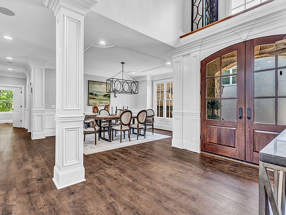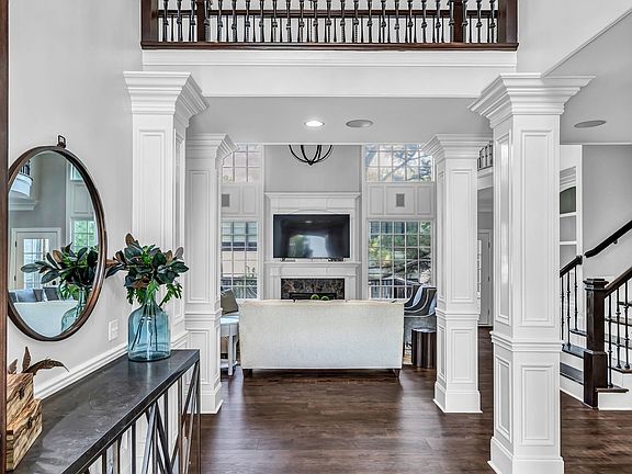 The main level welcomes you with soaring 20-foot ceilings in the living room, where custom woodwork, built-in bookcases, a gas fireplace and detailed crown molding highlight the home’s refined elegance. A luxurious primary suite on the main floor offers a serene retreat, while a separate guest suite ensures privacy and convenience for visitors. Upstairs, you’ll find a second primary suite, along with a spacious office that features a fireplace and a private balcony overlooking the living area—perfect for working or relaxing in style. The fifth and sixth bedrooms and their attached bathrooms are conveniently located upstairs, just around the corner from an impressive 800 square foot bonus room with wet bar perfect for an arrangement of your favorite table games or spacious home theater design.