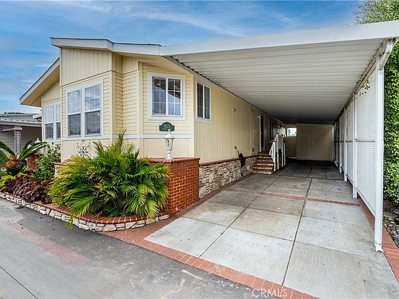 Welcome to Huntington Harbor Village. This is a unique condominium community of manufactured homes where residents own their own land. This 55+ community offers a peaceful, coastal environment to live in. Enjoy all of the amenities which include the outdoor community pool and spa, beautifully remodeled clubhouse, fitness gym, putting green, barbecue and much, much more. This amazing home features charming curb appeal. Immediately you will notice the custom stone and brick work on the outside of the house, along with a spacious side deck perfect for enjoying the cool afternoon breeze. As you enter the property your eyes will be drawn to the living room's high tray ceiling, fireplace and newer vinyl flooring. This home boasts 2 large bedrooms, 2 bathrooms, and an office/den. Enjoy entertaining guests in the spacious kitchen and your own private outdoor entertainment area with a built in custom BBQ, bar and outdoor fireplace. This property is only a short drive to Trader Joe's, fantastic restaurants and the beach.