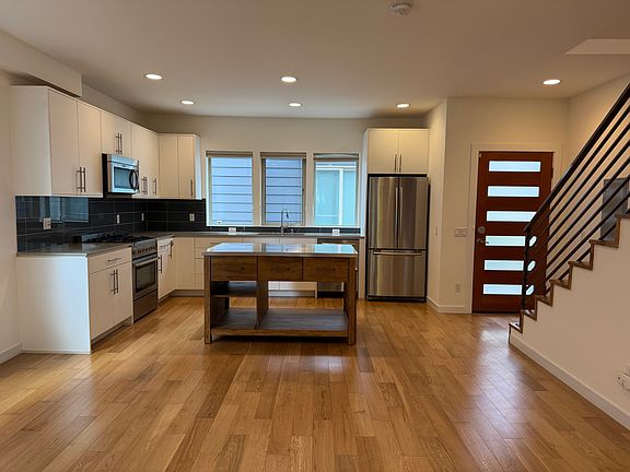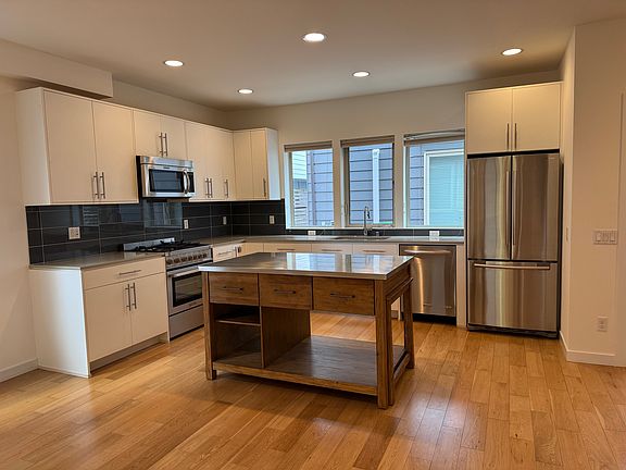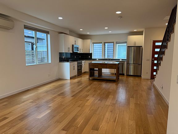 Beautiful, spacious and contemporary 3 level townhome in the middle of Seattle's coveted Fremont neighborhood! This great townhome has an open space kitchen and living room on the main floor with a half bath just off the living room. Kitchen has newer appliances and gas stove. There is also a wonderful kitchen island that comes with the property, where you can sit for snacks and use for additional kitchen storage and prepping. Also off the living room is a small patio and outdoor area. On the second floor you will find 2 spacious bedrooms and a full bath. One of the bedrooms would be an ideal office space or recreation area. On the third floor is a generous master bedroom suite with a spacious east facing view deck. The master bathroom has double sinks, and a beautifully tiled shower. There is also a generous walk-in closet. The Piece de resistance is the upper level rooftop deck with east facing views of the mountains and peek-a-boo views of the lake! This home is located in a wonderful northern part of the Fremont neighborhood, walking distance to beloved cafe's, eateries (like Paseo, Le Coin, Rock Creek, Cafe Vida, Lighthouse Coffee...), yoga studios, and more! Also a convenient location with super easy access to Hwy 99, South Lake Union, downtown Seattle, and rapid transit. 1-2 outdoor parking spots on property, depending on the size of your car(s). Pets accepted, but only 1 please! Don't miss out on the opportunity to call this wonderful home yours! See our website for rental criteria and for online application: https vmi. Contact for viewing or questions concerning the listing: VMI Property Management