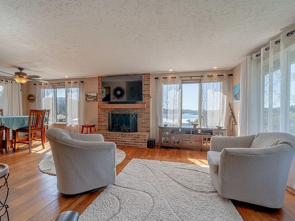 Lakeview Updated home, on a spacious lot. Large Windows to enjoy the view while enjoying the Gas Fireplace. Beautiful wood floors, Spacious kitchen with Corian Counters, and lots of Cabinets. Spacious & Cozy Room downstairs with Bathroom and exterior access. Recently painted and new landscaping. New gravelled drive for multiple RV's. Perfect home to bring your friends and enjoy the Beach activities along with all the Lake has to offer with your own access to the Community Dock on Devils Lake.