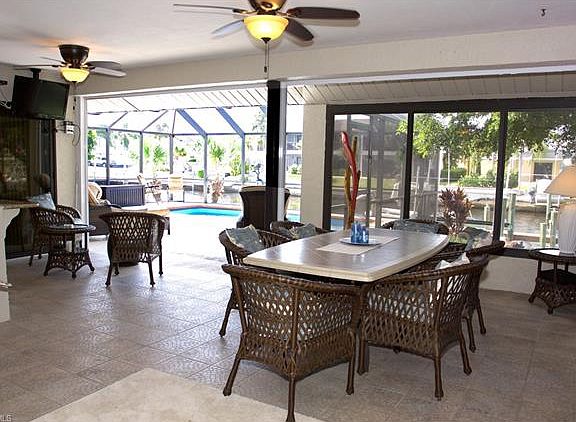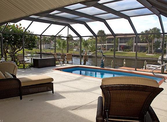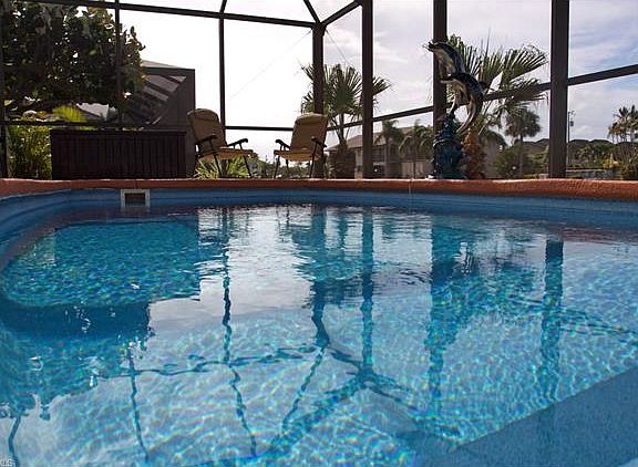 MOTIVATED SELLER-Gulf Access Boater's Dream Home on 100' Wide Canal near Rubicon, private dock (elec/water), Captain's Walk & 10,000# boat lift, short boat ride (1 bridge) to the Calahoosahatchee River where you can dine at the Yacht Club. Swim in your priv screened pool with sunny SW exposure, OR watch Dolphins while relaxing on your private tiled lanai w/NEW hurricane screens. Enjoy your beautifully remodeled home w/almost 2,000 sq ft liv space. This meticulously maintained home has updates throughout, including a great room with bamboo floors, cathedral ceiling, crown molding & 5" Floor trim Open to an updated kitchen w/large granite brkfast bar seating 4. You also have updated lighting w/9 ceiling fans, remodeled bathms, Calif closet, NEW interior doors & hardware, large laundry room w/lots of storage, NEW garage door w/NEW/opener W/keypad, NEW electrical panel, water filtration system, attic stairs, alarm system & fresh paint. Outdoors you have security motion sensors, NEW landscaping and a Beautiful neighborhood w/NEW home next door. Located in heart of SE Cape Coral off Country Club near shopping, restaurants, banking, entertainment and convenient access to Fort Myers.