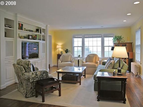 Green Hills Traditional Remodeled living room with French doors opening onto covered blue stone patio and garden.