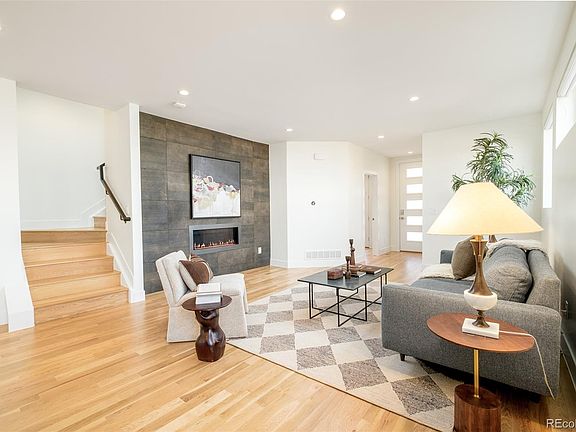 Sophisticated & Spacious Berkeley Duplex with Rooftop Retreat. Nestled in the heart of Berkeley, this stunning nearly new duplex blends modern luxury with timeless charm. Inside, freshly refinished solid oak floors and crisp new paint set the stage for an impeccably maintained home. The open-concept main level is designed for both entertaining and everyday living, featuring a chef’s kitchen outfitted with premium Wolf and Bosch appliances—perfect for crafting unforgettable meals. Relax in the inviting living room, where a striking gas fireplace creates a warm and cozy ambiance for movie nights. A dedicated main-level office offers the ideal work-from-home setup. Upstairs, three generously sized bedrooms include a lavish primary suite with a spa-inspired five-piece bath and an impressive walk-in closet. Outdoor living shines in this home—host summer gatherings in the private backyard or unwind under the stars on the expansive rooftop deck with breathtaking mountain views. With owned solar panels, enjoy the benefits of ultra-low electric bills. Situated just one block from the vibrant shops and dining of Berkeley’s famed Tennyson Street and only 3 blocks from Berkeley Lake, this home offers unparalleled access to the best of Northwest Denver. Quick access to downtown and I-70 makes city life and mountain getaways effortless. Style, comfort, and convenience come together perfectly in this exceptional home. Welcome home.