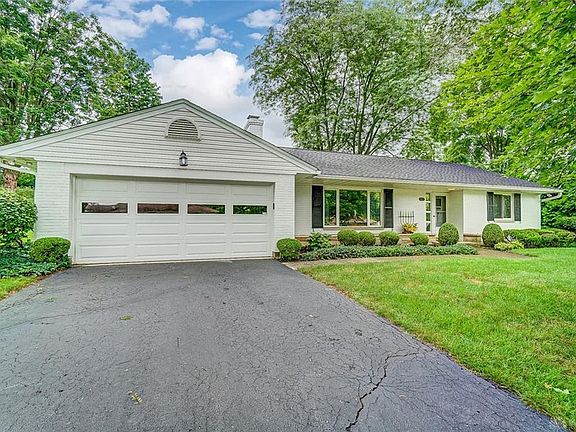 Picturesque West Kettering location. This all brick, well-maintained ranch is sure to please. The bright white painted brick exterior is eye-catching! Living room with large window boasts a lot of light. Fireplace is fitted with an electric fireplace which adds great ambience. Beautiful white cabinets & countertops in the kitchen gives brightness to this home. Lots of cabinetry for ample storage. You will fall in love with the sunroom, beautiful open beamed ceiling & looks out to the gorgeous setting in the back yard. (Carved eagle does not convey). Two car garage with attic storage. Wonderful radiant floor heat for those cold winter days. This home won't last, so make an appointment today!!!