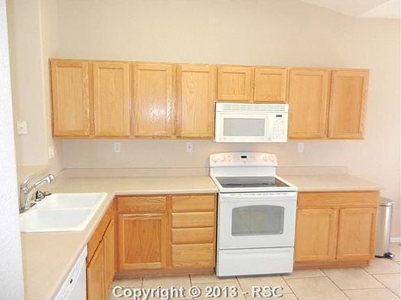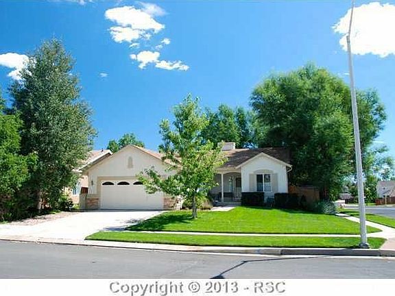 Open ranch style home shows like new * Eat-in kit w/views of Pikes Peak, lots of cabinet space & brkfst bar * Spacious LR w/vaulted ceiling, gas FP, c-fan & walkout to lrg patio * Mbed w/vaulted ceiling, attached 4 pc BA w/soaking tub & walk-in closet * C-fans in all BR * Finished basement w/lrg FR, 2 BR, ¾ BA & storage areas * FR is theatre room wired for surround sound & projector * Newer roof * Central A/C & humidifier * Fully landscaped lot w/fenced backyard, sprinkler system & drip * Security system * New int. paint * New carpet on main lvl.