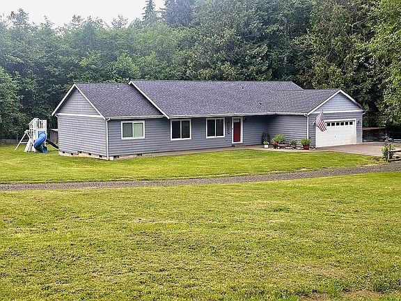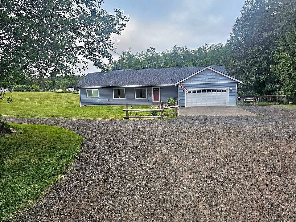 The property sits on a total of 2.36 acres, has a large 36x36 shop with concrete floors and power, also has a 13x36 lean-to with an animal stall, has a large fenced pasture with a turn outdoor. the back yard also has a large chicken coop with run, has a small year-round creek running along the property.