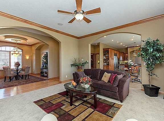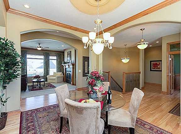Award winning Home Show Home! 3,940sf walk-out ranch. Side load 3 car gar. Your new home comes with a gourmet kitchen with cherry cabinets, granite counters, SS appls such as a Wolfe gas cook top w/outside vent, dbl Sub-Zero freezer/refrigerator, dbl oven, lrg island & dinette w/wndws on 3 sides and a red birch floor. The 1st flr has a FR, that is open to the kitchen w/frplc; a formal DR, private office/den, Master suite with assume ceiling, walk-in closet w/lrg tile shower w/body sprays & hand wand. Plus a 1st flr laundry area to be envied, w/an elevated washer & dryer, sink , sunny window & lots of storage. Go down to the walk-out level via a wide rounded stair case, to 2 more BRs, each w/their own full baths and an extra 1/2 bath, very lrg game/FR. You can entertain from a complete full kitchen. Bonus garden rm in the bsmt w/rear service door to the outside.