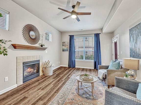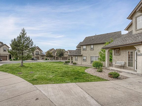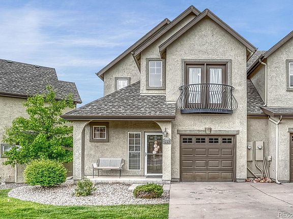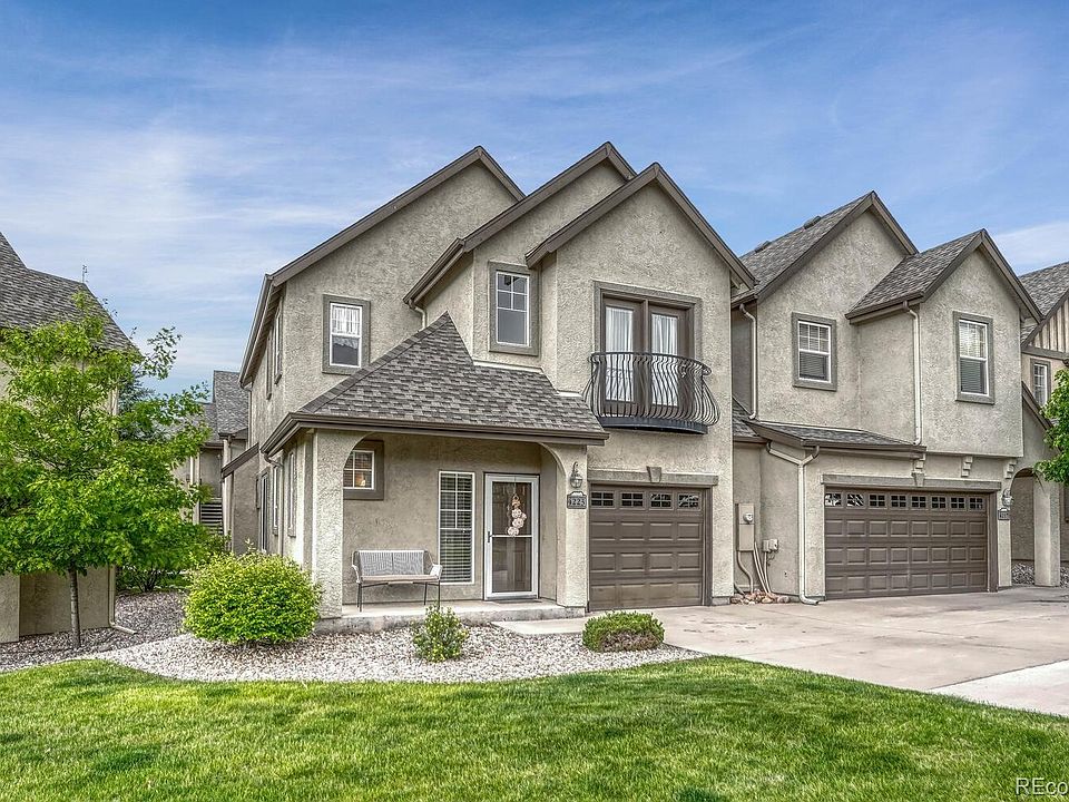 End unit condo that feels like a townhome in a gated community! Situated on a corner lot with central air and an attached 1-car garage and driveway! * Brand New Carpet! * Great cul-de-sac location, close to everything including Peterson AFB, restaurants, shopping, parks, and schools! * Within walking distance of neighborhood elementary school * Steps away from a nice playground and High Meadows Park * The spacious living room features a gas fireplace and provides a walk-out to the covered back patio * Bright kitchen with window, smooth top range oven, overhead microwave, attractive counter tops, tile backsplash, large pantry, and pass through window to dining room * Main level bedroom/office * The upper level is comprised of a large loft area that can be used as a flex space or office, two additional bedrooms, two baths, an amazing laundry room, and plentiful storage * The primary bedroom provides a walk-out (with retractable screen storm door) to a private balcony and features an adjoining 3/4 bath with a double vessel sink vanity with a granite counter top, tiled shower with a mud set shower pan, and walk-in closet. The secondary bedroom is spacious and offers a Juliette balcony bringing in abundant light. The laundry room is incredibly functional and provides windows with beautiful views of Pikes Peak, generous cabinet storage, a sink, and counter space for folding! Your HOA dues include water/sewer, a clubhouse, workout space, swimming pool, and hot tub.