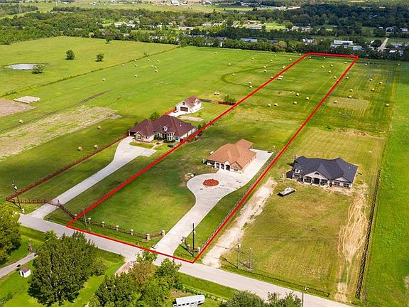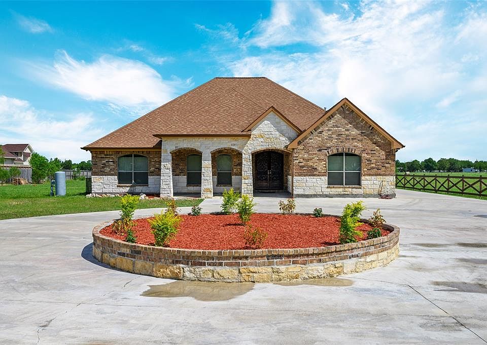 Custom built home on 4.6 Acres featuring 2 master suites and 3 full baths. Lots of upgrades including brick and stone exterior, extra large bedrooms, double pane windows, custom cabinets, high ceilings throughout the home, granite counters, ceramic tile floors, stainless steel appliances and recessed lighting.. Kitchen has ample storage space with a large island and space for a wine fridge. Laundry room has pullout bins for laundry and lots of folding space. Master bathroom has large walk in shower with rain shower head and custom shoe storage cabinets in closet. Back patio is 38x26 and has gas line ready for an outdoor kitchen.