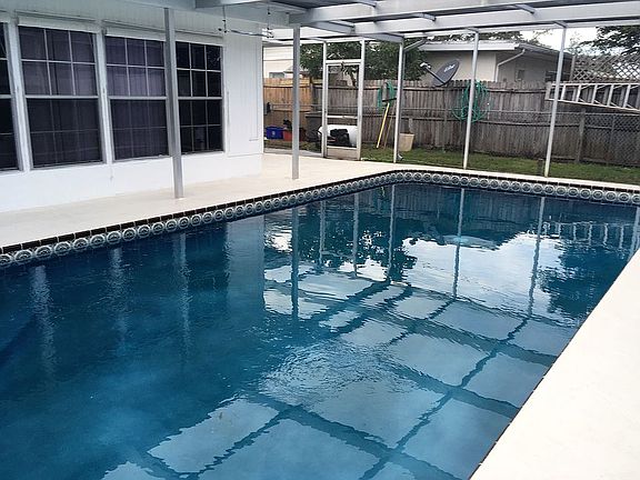 Mid century modern charmer with full size recently refinished swimming pool you can actually swim in! Hurricane code 16' x 13' workshop/storage shed/man cave; wired for extreme workshop. New HVAC in 2016. Large double-wide driveway with parking for 6 cars, RV/boat, etc. Sprinkler system with two wells. Move in ready.