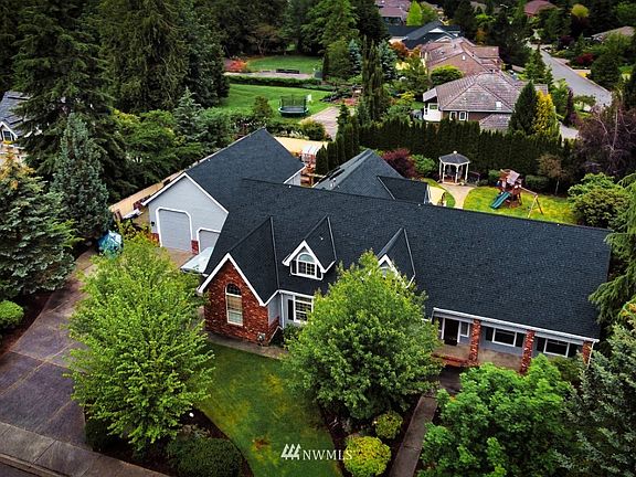 Custom home in Parkwood Estates built in 1993 featuring 4394 sq feet on a 0.613 ac. lot and has a detached 1,092 sq ft shop/ RV garage. Hardwood floors, soaring high ceilings in dramatic Living room with fireplace, built in storage and French doors to the spacious entertaining deck in the back yard. Huge kitchen w/solid surface countertops, large island with gas stove, extra storage and view of the backyard. Primary suite on main with adjoining spa room with hot tub and lap pool. Also, on the main level is a junior suite with 3/4 bath. Upstairs has great family room, 3 bedrooms with a jack & jill bath, walk in closets, lots of built-in storage. Outside has fenced in garden area w/raised beds & greenhouse too. This home has so much charm!