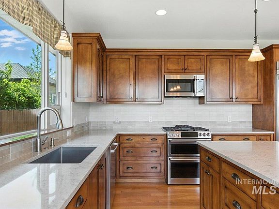 Welcome to this beautiful, single level home nestled in the North Boise Foothills! Take in the expansive views of Table Rock, Simplot Hill and downtown Boise from the scores of windows on the back of the home. WIth an updated kitchen including new quartz countertops, gorgeous tile backsplash, a large island and GE Cafe range/oven, this home is perfect for the chef and entertainer. The open floor plan allows you to host seamlessly as the living space opens up beautifully onto the spacious back patio. Escape to the large master suite with an updated master bath including radiant heated tile floors, dual vanities, large soaker tub, tile shower and walk in closet. Enjoy the breathtaking views from the kitchen, dining space, living room and master bedroom! Sitting on a sizable corner home site with plenty of privacy, this home is a must see!