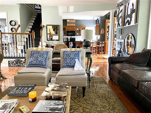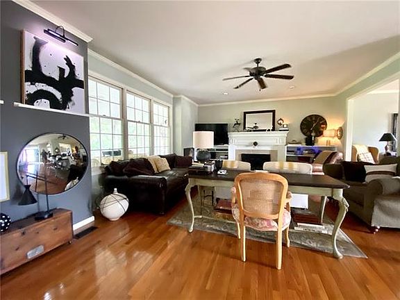 Unique 4-bedroom 2-story with wide open main floor! Walk-in closets in all bedrooms. Coffered ceiling in master bedroom. 9’ ceilings on main floor. Extra linen/medicine closet in master bath. 3 ½ bath. Fifth non-conforming bedroom with walk-in closet in basement. Mini-kitchen in basement with bar sink, bar refrigerator and granite top. ¾ bath in basement. Laminate floors in basement living room. Sump pump less than 1 year old. This beautiful 3300+ sf home sits on approx 1/2 acre lot with shade trees and attractive landscaping. New roof and 6" seamless guttering fall 2021. All hardwood main floor and hardwood/carpet stairs. Updated ceramic tile in all bathrooms. Masonry fireplace. 2nd masonry flue for future wood stove in basement. Eat-in kitchen has beautiful custom honed granite countertops along with new microwave and newer Bosch dishwasher. Cozy sitting area next to kitchen with soaring vaulted ceiling. Formal dining room. Huge 4th bedroom and unique bonus room adjoining another bedroom. 3-car garage and screened back deck ready for relaxing! Seller to provide buyer with home warranty up to $700.