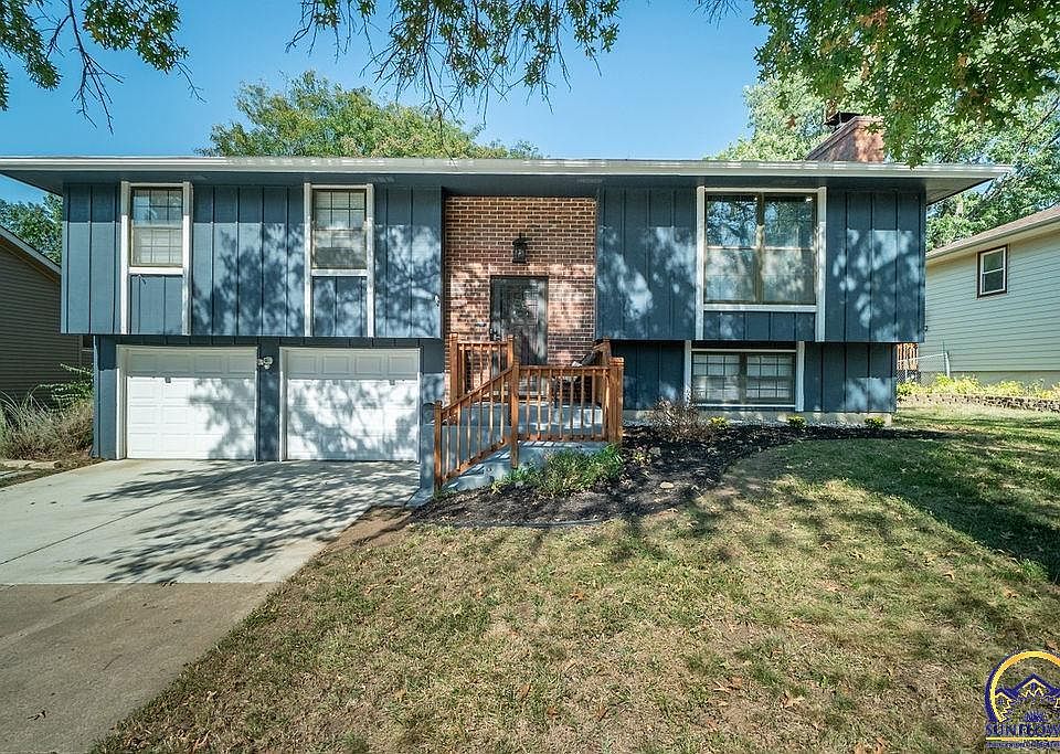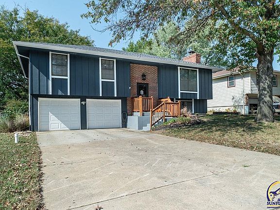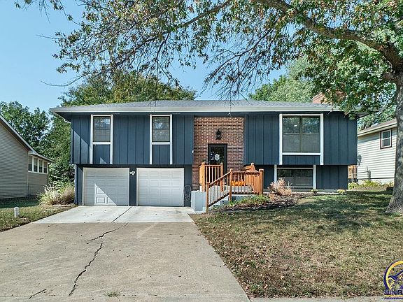 This split-level home has three bedrooms and 2 1/2 bathrooms and is situated on a spacious lot in a quiet cul-de-sac in the Shawnee Heights School District, close to lake Shawnee. The large backyard includes a play set, shed, fire pit, and a fully fenced-in backyard, as well as a spacious double deck. The upper deck is covered, making it ideal for family BBQs. Inside, you'll find an open and airy layout. The primary bedroom has its own 3/4 bathroom with a walk-in shower. The large living room seamlessly connects to the open kitchen and dining room. The kitchen offers plenty of cabinet and countertop space overlooking the large, shaded backyard. As a bonus, the kitchen appliances will stay. The open basement features a sizable family room with a wood-burning fireplace, a bonus area that can be used as a gym or office, and a large laundry room with a half bathroom. The two-car garage is oversized, and the large driveway provides extra parking. The property boasts a newer roof, laminate flooring, fresh paint, and a newer water heater. The washer and dryer are included with an acceptable offer!