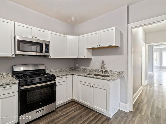 Simply irresistible! Built in 1915, fully rehabbed and remodeled in 2022, this beautifully decorated 2-flat is ready for you to move-in. Upgrades include new interior doors, new argon glass double hung white vinyl insulated windows with screens, polished hardwood floors, new carpeting, new plumbing (2018), new electrical (2018), new roof & silver coating (2018). All kitchens and bathrooms are brand new. I used new an awful lot. Kitchens feature 30-inch white cabinets, granite countertops, vinyl plank floor, modern faucets with a nickel finish, stainless steel refrigerator, stove, and microwave. Bathrooms are outfitted with new mirrors, vanities, fixtures, tubs, dual flush toilets, and matching tiled floor and shower surround. The 1st floor unit has a living room with remote controlled ceiling fan, dining room, 3 bedrooms, 1 full bathroom, and a large, enclosed back porch with a private back entrance. The 2nd floor unit has a living room with remote controlled ceiling fan, dining room, 3 bedrooms, 1 full bathroom, one half bathroom, and a humongous, enclosed back porch with a private back entrance. Building comes with two water meters, two water heaters (both 2019), two furnaces (1st floor 20+ years, 2nd floor 7 years) and separate electrical. The full basement is unfinished, clean, dry, painted, and secured with block glass windows. The lot is 4,500 square feet which means you have a really large backyard.