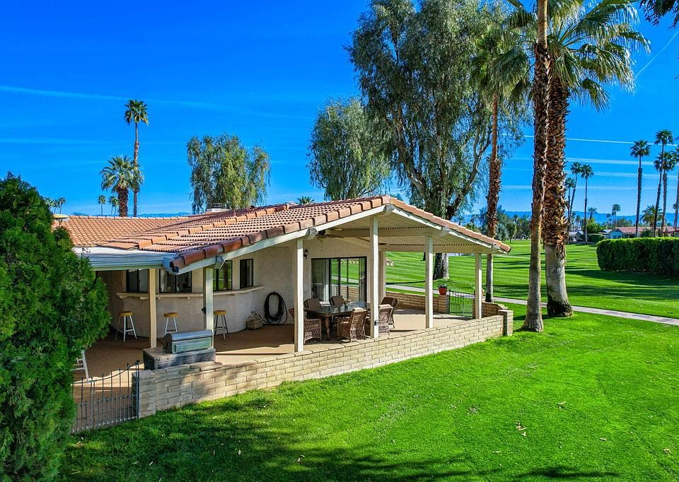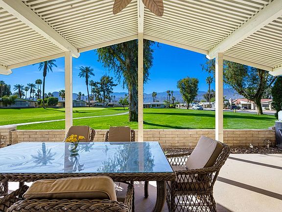Seller highly motivated to sell, bring offers!Located in the highly sought-after 55+ gated community of Portola Country Club, this rare single-family home offers breathtaking panoramic mountain, golf course, and water views. Unlike many homes in the community, this is not a manufactured home!Property Features:Spacious & Open Floor Plan: Designed for entertaining, featuring a large open living room with a gas fireplace and wet bar.Gourmet Kitchen: Beautifully remodeled with elegant white cabinetry, black quartz countertops, and upgraded appliances. The kitchen boasts three bay-like windows with a convenient serving pass-through.Luxurious Master Suite: Includes dual vanities, two closets and a relaxing Jacuzzi tub.Outdoor Paradise: The expansive wrap-around patio offers non slip/easy to care for concrete surface, multiple seating areas, a built-in BBQ, and a dedicated margarita bar--perfect for entertaining and enjoying the serene surroundings.Quality Upgrades: Spanish tile roof, roll-up security screens, retractable awnings, and a spacious two-car garage.Community Amenities:Low HOA dues include free golf for two people on title, cable, and trash services.Access to a variety of amenities: a clubhouse, restaurant, billiard room, meeting room, three pools/spas, a fitness center, tennis courts, bocce ball, dog park and more!Prime location in Palm Desert, just minutes from world-class shopping and dining at El Paseo.Don't miss this rare opportunity to own a spectacular home in Portola Country Club! Contact us today to schedule a private tour.