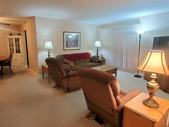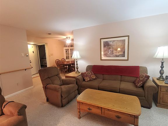 First floor condo in desirable Allenwood Estates! Just over 1,300 sq ft featuring 2 bedrooms + den/office (could easily be converted to 3rd bedroom), eat-in kitchen with all appliances included. Dining room (with built-ins in each corner) opens up to living room which has sliding doors that lead to private patio... perfect place to unwind or entertain! Extra storage closet off of patio as well. Master suite with bathroom & newer shower stall in main bath. Nice size laundry room with extra storage space. One car attached garage. Clean & ready for new owner!