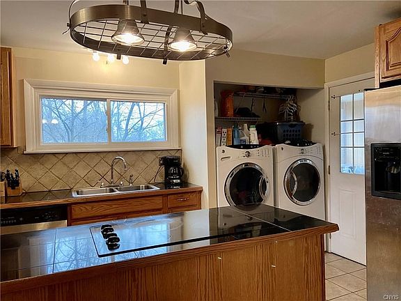 Located within a well-established neighborhood in the Liverpool School District this raised ranch just needs some TLC to reach its full potential. You'll love the expanded and updated kitchen featuring a center island with cooktop, double ovens, two stainless steel sinks, ceramic backsplash, and plenty of cabinet & counter space! The laundry area is conveniently located on the main level adjacent to the kitchen. Just a few steps away you'll find an enclosed porch overlooking the backyard. Rounding out the main level is a living/dining area featuring a wood burning fireplace, 3 bedrooms and a full bath. Downstairs you'll find another full bath with ceramic tile and 3 nicely-sized rooms - 2 with closets. Currently used as bedrooms, this level offers lots of flexibility for whatever you need: office, student learning center, playroom, home gym etc... Outdoors you have a double-wide driveway, mature trees, 2 sheds and front entry deck. HWH 1 YR old, lower bathroom plumbing updated 2010. Located off Rt. 57, this home is close to shopping, restaurants and major highways. 2021-05-20