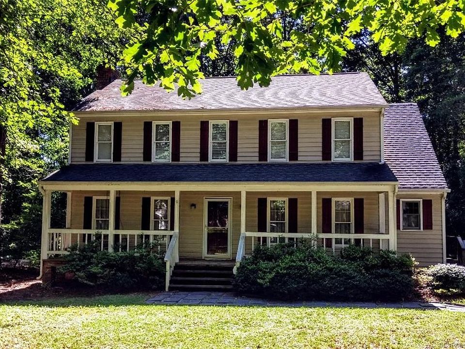 This is your next home! With a full front porch and swing. This great home has a newly renovated kitchen with soft gray cabinets, solid surface counters, and even a writing desk. The HUGE family room is the perfect spot to relax with family or friends with it's beamed ceiling and wood burning fireplace. Or for a change up, when it's time to relax, enjoy the bright and sunny florida room with a tiled floor that leads to the large rear deck as another perfect place to enjoy time with friends or family. There is a convenient half bath and laundry center just off the SIDE entry... and the perfect formal dining room is just off the FRONT entry. When you walk up to the second level of this home, you will have engineered wood floors throughout... in both the hall and in all four of the bedrooms. Speaking of bedrooms, the master bedroom is extra large with an oversized en suite bath with a fully tiled and large walk in shower. Your new perfect home awaits and it's on a large lot in the Creekwood subdivision "the best kept secret in Chesterfield County" Creekwood has a community pool and clubhouse, so don't wait..bring your clients to see this wonderful home in a desired neighborhood